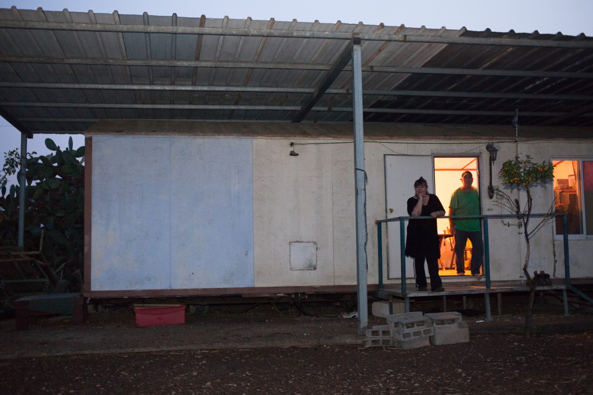 שמוליק ושאנה בפתח הקרוון. צילום: אורי פינר