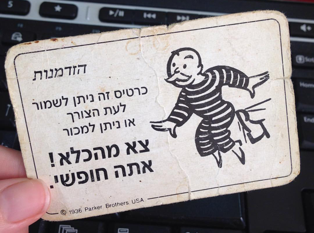 יוצא שאני היחידה שאוהבת לעשות את התפקיד הזה שאף אחד לא אוהב, ובמהלך של הצדקה עצמית אני מפרישה לעצמי עמלה. פעם גם שלחתי הצעה לחברת מונופול העולמית. לתת בונוס על התפקיד, במקום שאגנוב. הדבר המדהים במונופול זה שאם תופסים אותך גונבת מהקופה, לא רק שזה לא כזה עניין אלא גם שבדרך כלל יגידו לך: "לא מאמין שגנבת לעצמך שני מלונות וכסף, יא תביאי גם". במונופול גם לא הולכים לכלא כשגונבים מהקופה, וגם כשכבר הולכים – תמיד יש את "צא מהכלא אתה חופשי".