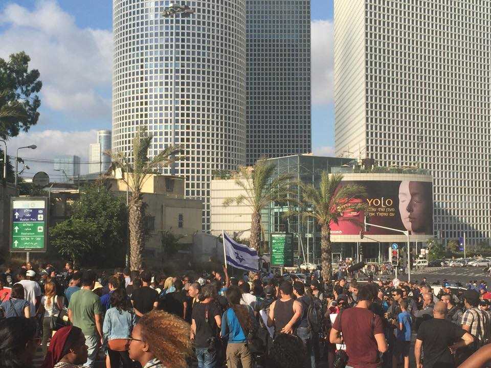 הגעתי לעזריאלי וכבר כשיצאתי מתחנת רכבת השלום ראיתי כל כך הרבה ניידות, ושקפלן חסום. המפגינים היו על המדרכה והמשטרה מנעה מהם להתקדם לכיוון עזריאלי. המשטרה גם הביאה סמויים לתוך ההפגנה, חלקם שוטרים מהעדה וחלקם לא. אנשים צעקו במגפון את השמות "יוסף סלמסה" ו"אברה מנגיסטו". אמא של יוסף סלמסה סיפרה על בנה שמת בעקבות אלימות משטרתית, ואנשים בקהל בכו. זה היה קורע לב.