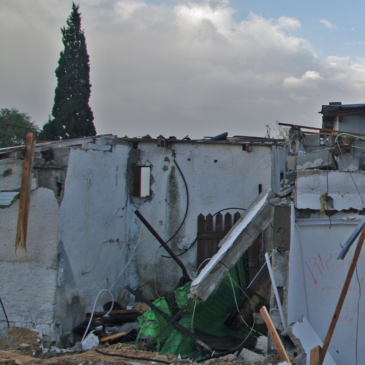 קיר מבית שנהרס על ידי משפחת כוזהינוף בגבעת עמל ב׳. צולם היום אחרי גשמי הלילה והבוקר.