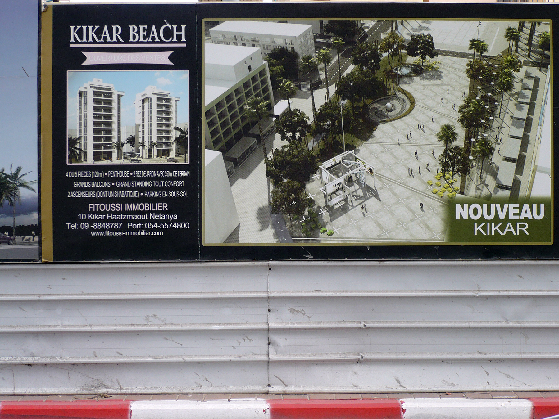 בחזית הרחוב מתנוססות שלל פרסומות לגורדי השחקים העתידים לקום שם, כולן בצרפתית. ביניהן, אפשר להבחין גם בפרסומות ל"נובו כיכר" (Nouveau kikar) היא כיכר העצמאות החדשה, הכוללות הדמיות תלת-ממד של הכיכר העתידית, שהספיקה בינתיים כבר להפוך לממשית. הווירטואלי מתערבב עם הפיזי, המדומיין עם הממשי, הישראלי עם הצרפתי. בקיצור, נתניה.