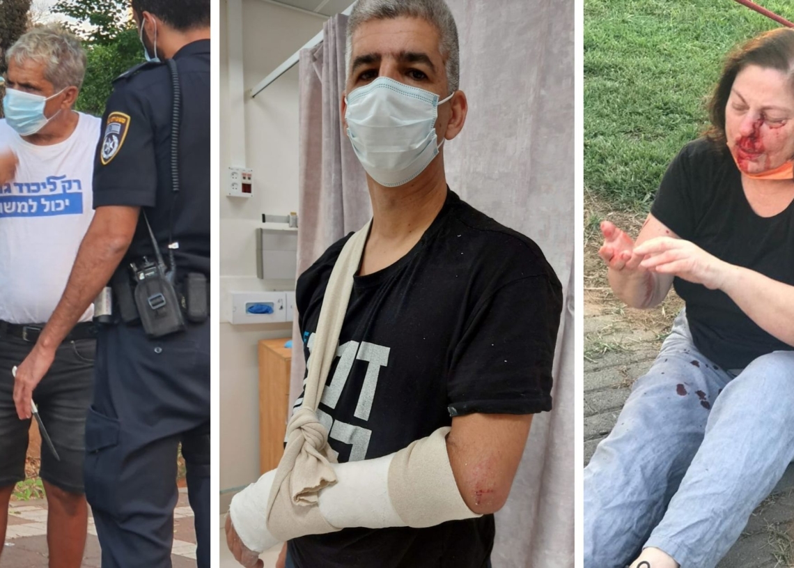 האלימות נגד לב היא מקרה קיצוני שהסתיים בבית חולים, אבל רחוקה מלהיות מקרה בודד או נדיר באירועי הסופש האחרון. לא רחוק ממקום תקיפתו של לב, הותקפה אמש בכיכר מגן דוד בפרדס חנה, גם גאיה, בת 21. "כשהייתי בדרך חזרה הביתה מההפגנה ניגשו אלי כמה גברים דתיים והתחילו לקלל אותי", היא מספרת. "הייתי עם שלט 'לא לדיקטטור', והם צעקו שהוא לא דיקטטור, שאני שמאלנית מסריחה, בת זונה ורק ביבי. בהתחלה העימות היה מילולי אבל אז הם החלו לסגור עלי. ביקשתי שישמרו לפחות שני מטר ממני, כי חלקם היו בלי מסכות.