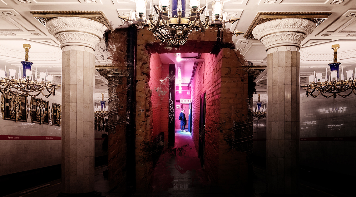 אחרי הסתובבות קלה באזור שבו ירדנו מהמונית, גילינו דרך מוארת באדום שמובילה אל בטן האדמה והסתבר שמסיבת הטכנו החמה של סנט פטרבורג מסתתרת במקלט אטומי מימי המלחמה הקרה שנועד לאכלס עד אלף בכירי ממשל למשך 150 שנים.