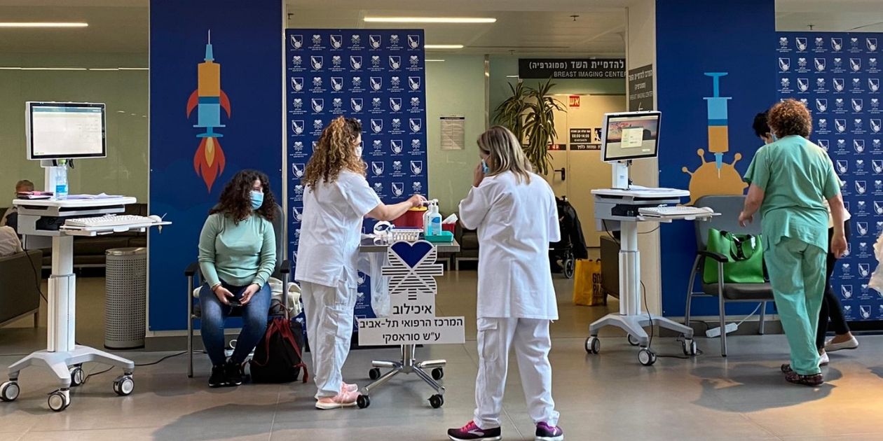 תמונה ראשית : תחנת חיסון באיכילוב | צילום: עינת פישביין