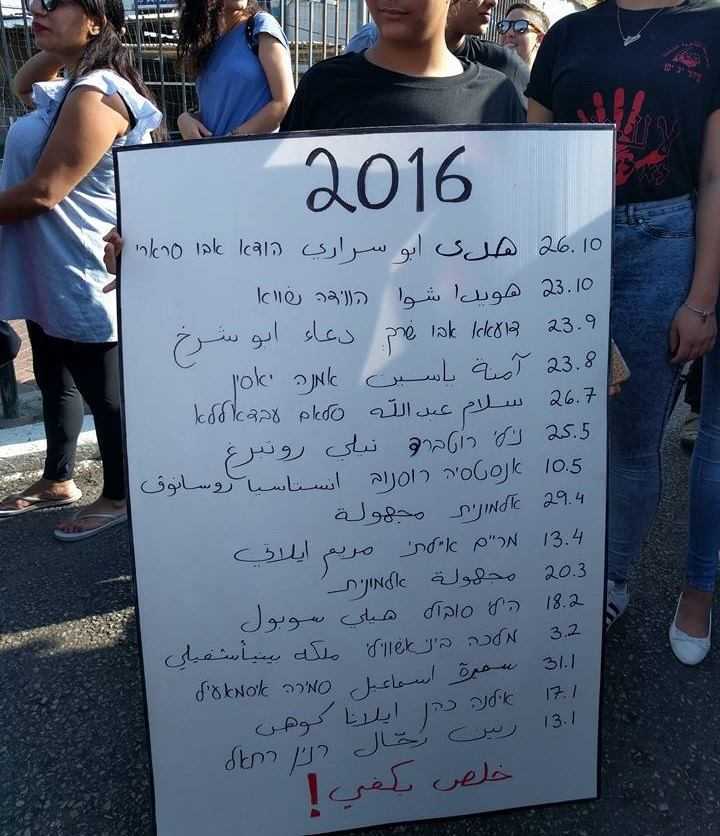 נערה מחזיקה שלט המונה את שמות הנרצחות בידי גברים מתחילת השנה ועד 28.10. צילום: איילת מור