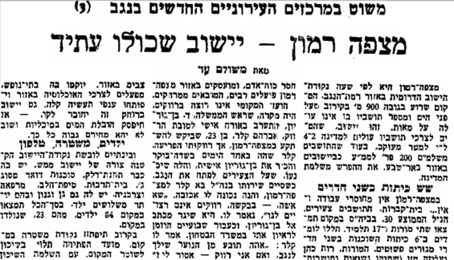 שוב ושוב הופיעו תמונות של עגלות סופר נטושות בלב הרחובות, שוב ושוב הדגישו את "השממה", את הנמנום של מצפה רמון את הכלום ואת הריק, את הקשיים הביורוקרטיים ואת המחסור בדיור.