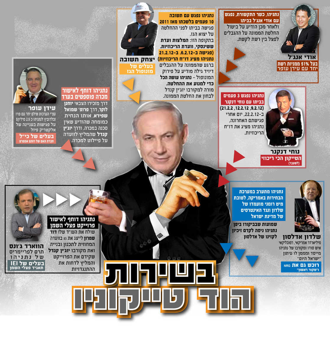 כי ככה זה כשראש הממשלה בנימין נתניהו הוא ידידך הנאמן. אז הוא גם נפגש איתך ב-6.2.12, שבועיים לפני שהוא מגיש את דו"ח הריכוזיות חסר השיניים ב-22.2.12 (והוא גם עורך סדרת פגישות אינטימיות עם חברך נוחי דנקנר, האחרונה שבהן התקיימה ב-21.2.12 – יום לפני הגשת הדו"ח שעלול לסכן את העסקים של שניכם).