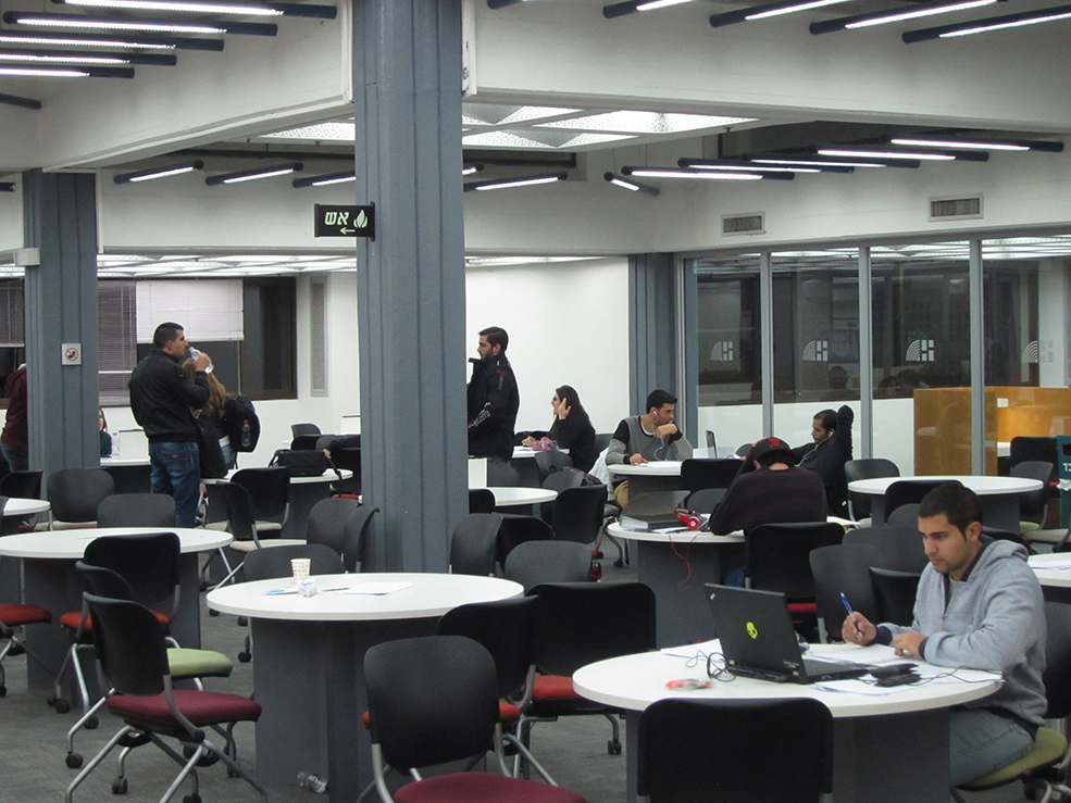באחת ההפסקות מהלמידה המתישה, מתכנסים כמה מהסטודנטים הערבים במועדון הספרייה ומזמינים פיצה דומינוס. "אנחנו גרים מאוד קרוב לכאן, אז נוח לנו להגיע", אומר חאזם, שלומד ביולוגיה וגדל בבאקה אל-גרבייה.