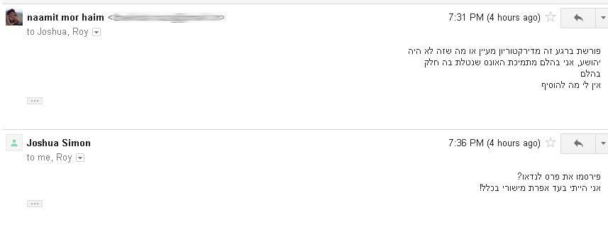 "איך זה הולך?", מתעניינת שרון מייבסקי בשרשור העימות עם חומסקי, ומעלה תהייה שלא מצאתי לה סימוכין נוספים: "חברי/ות הוועדה מציעים את השמות בעצמם? וגם, סיימון טוען במקום אחר שלא תמך בלאור. ידוע לך משהו על זה?".