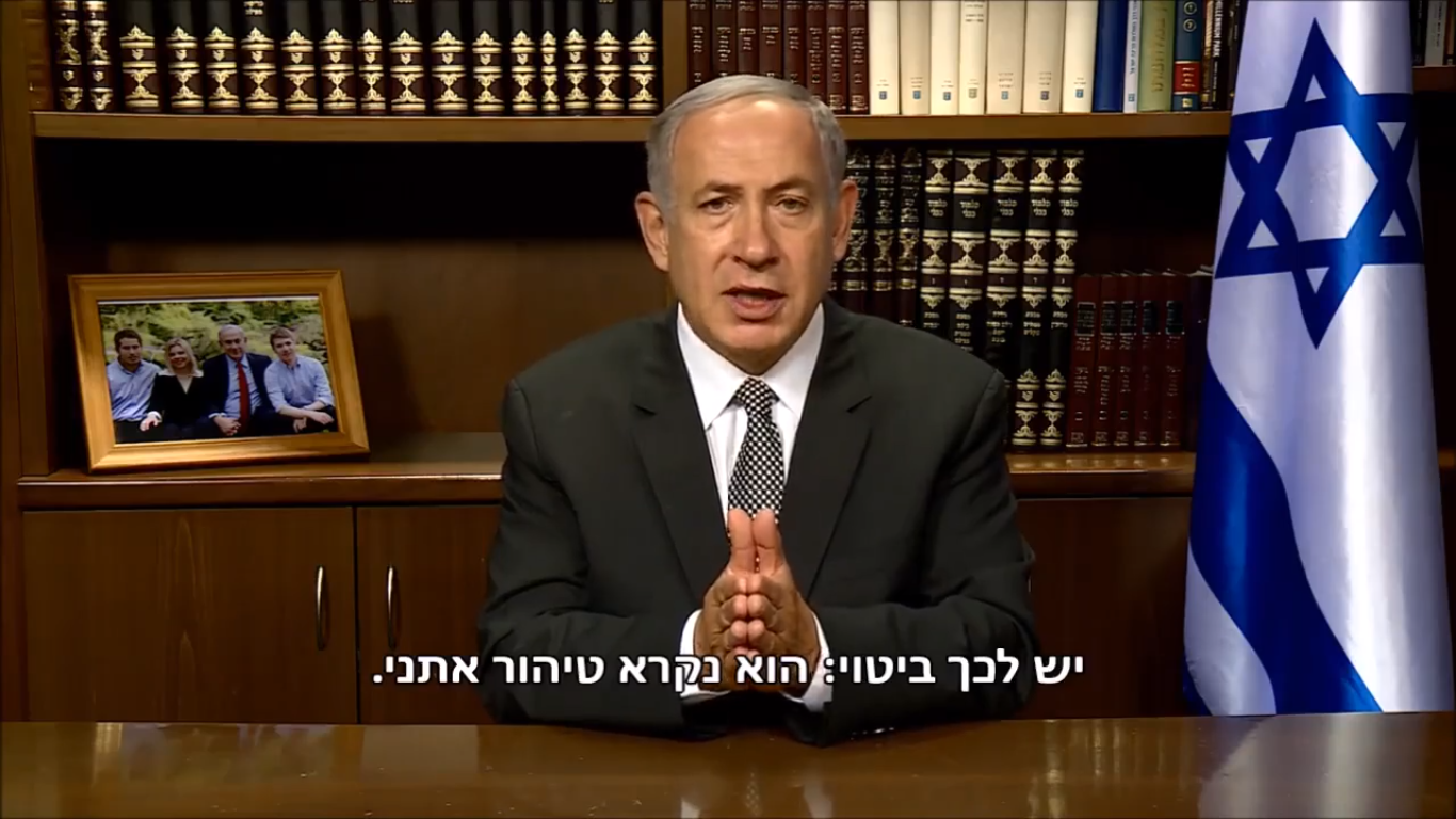 בט מייבי, איטס מאץ׳ מור טריוויאל, אנד ביבי ג׳אסט וואנטס טו להשוויץ ויט סם פיקצ׳רז אוב דה משפחה, דה פלאג אוב דה מדינה, דה ביוטיפול מבטא, אנד מיינלי – היז פרפקט קונטרול אובר דה אינגליש שפה. וורדז לייק פרפלקסד, קלינזינג, אנססטריאל. דיס אר אול מילים כדורבנות. מילים ד׳את איי אם וורי דאוטפול איף אני אדר פוליטישן אין יזרעאל איז בכלל אייבל טו להגות. אנד יו נו וואט? איטס אבאוט טיים סם-וואן סייד דוז וורדז.