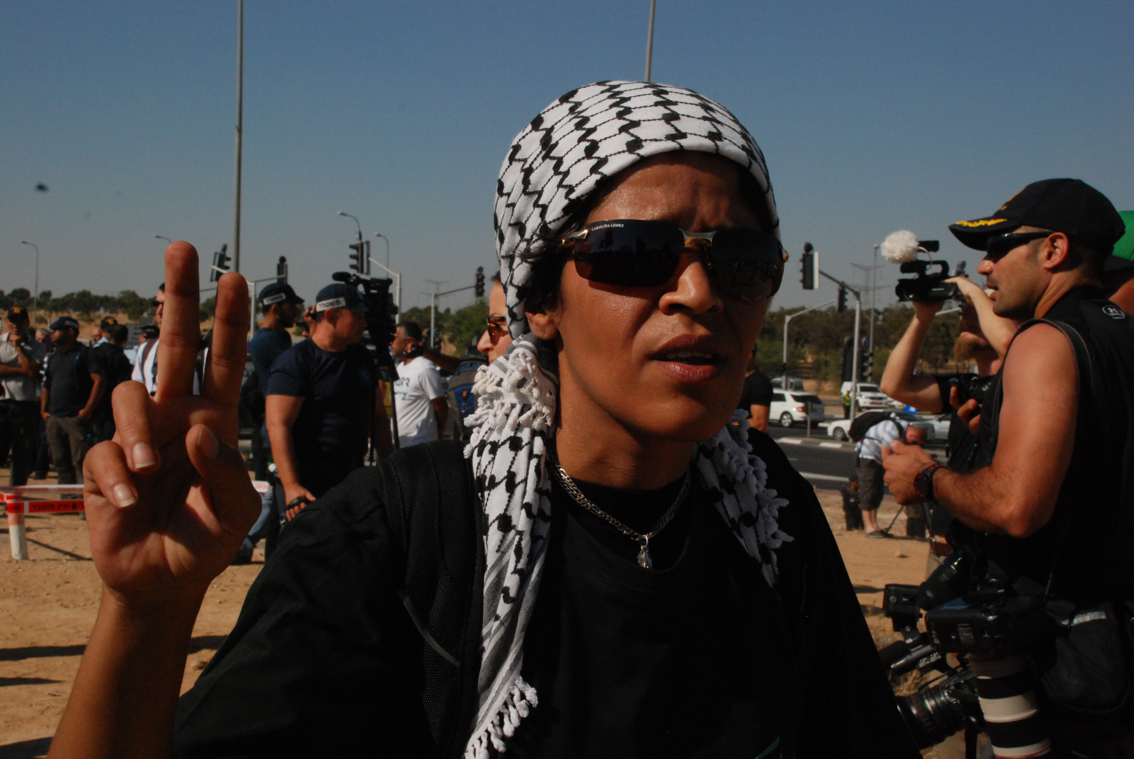 בצל נוכחות מאסיבית של משטרה, פרשים, מג"ב ויס"מניקים, המשטח המגודר בצומת להבים-רהט מתחיל להתמלא. יותר מ-1,000איש מתחיל לגדוש את האזור, מלווים בתופים ודגלים – פי שניים מאשר בהפגנה הקודמת, מציינים חברי הקבוצה בסיפוק – בתוכם תושבי הכפרים הלא מוכרים, תושבי רהט והסביבה וגם פלסטינים אזרחי ישראל מאזור כפר קאסם, המשולש, כפרי הצפון.